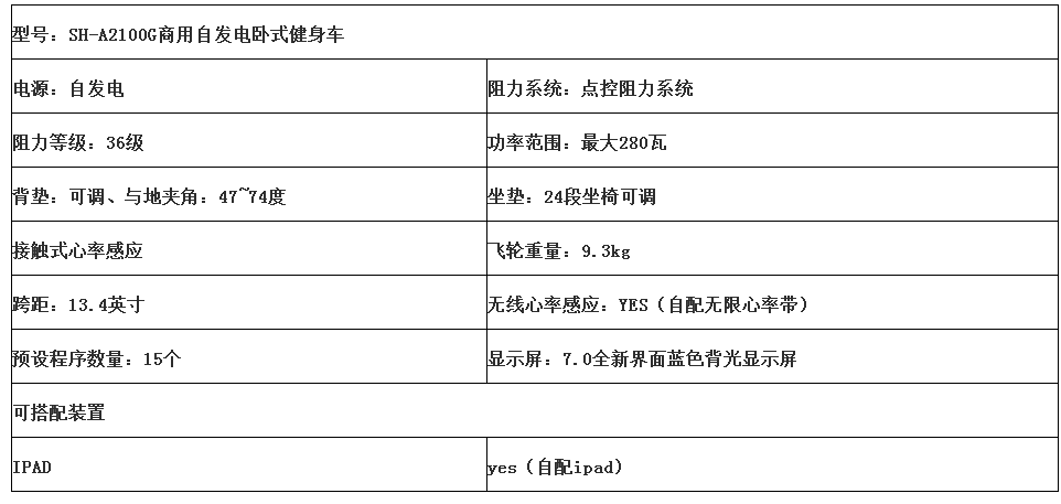 商用自發電臥式健身車SH-A2100G